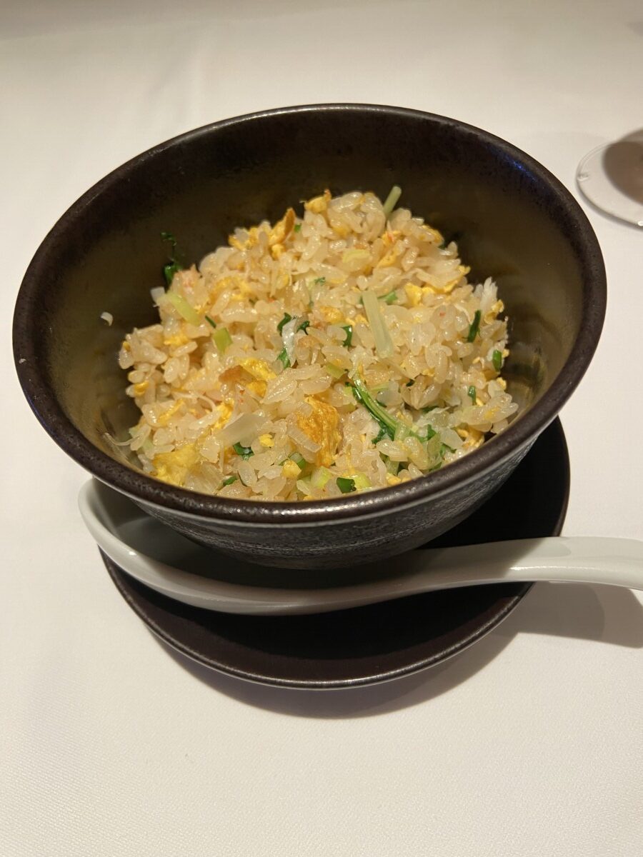 リバーサイドにあります     前菜はあっさり         ふかひれスープ      うれしいチャーハン