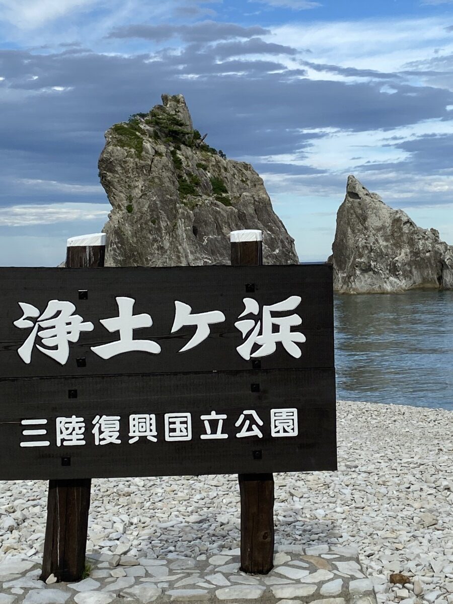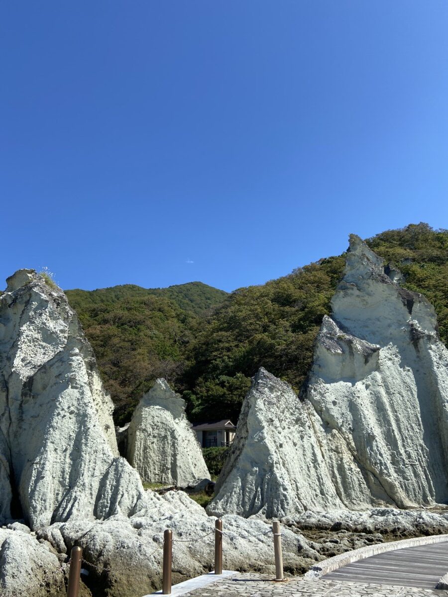 次は浄土ヶ浜へ。白い火山岩からなる尖った岩が様々な形をしています。美しい景勝地です。