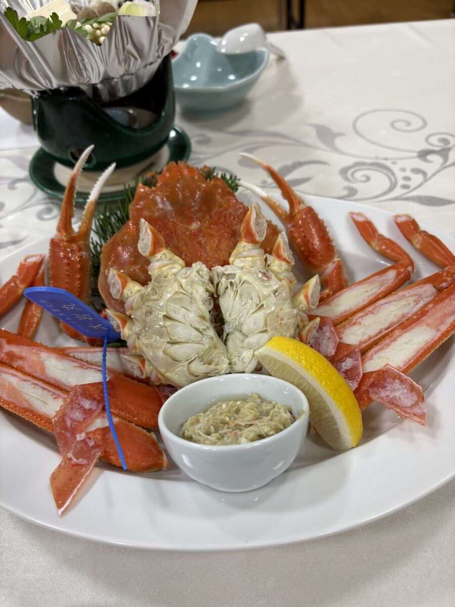 夕食は隠岐名物のカニ料理。地元の民謡と踊りを見ながらいただきました。