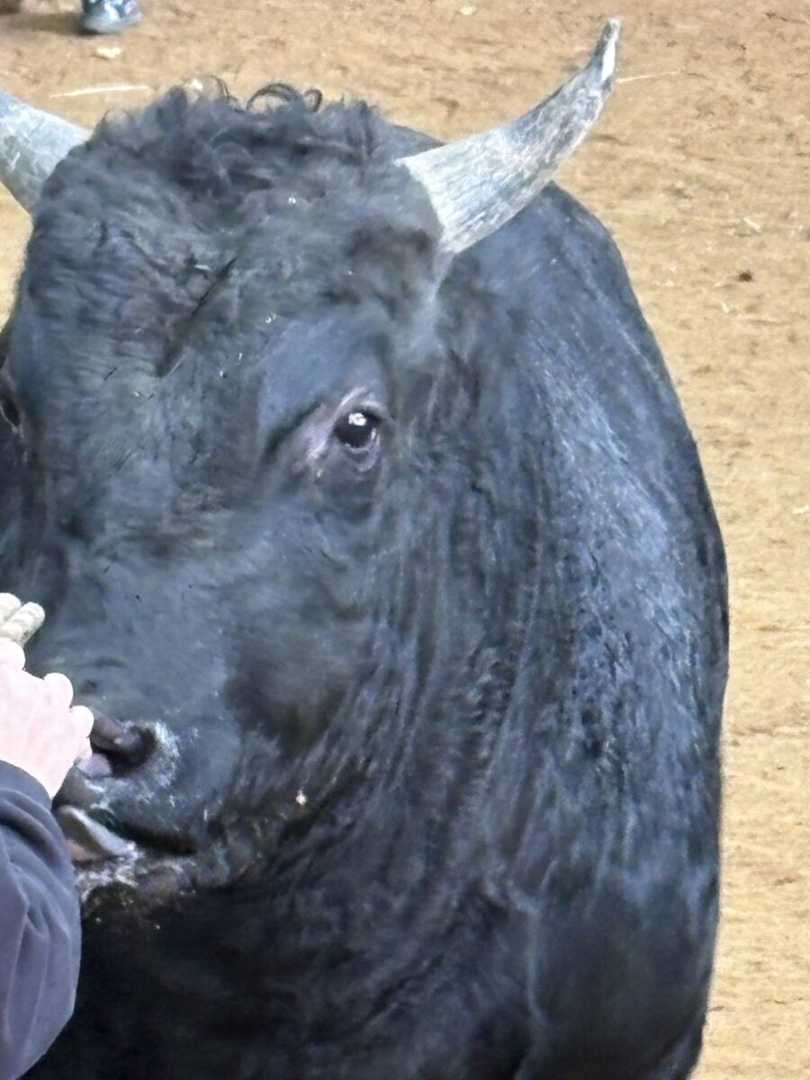 最初は獰猛だった牛も試合が終わると記念写真にも応じてくれます。