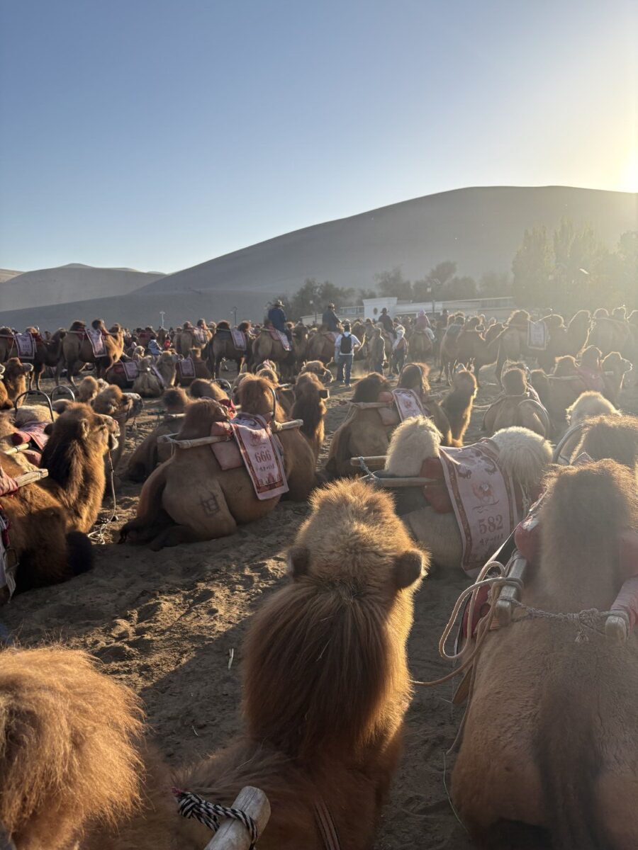 鳴沙山には何千頭ものラクダがいます。 ラクダに乗って砂漠を巡ります。