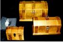 職人がひとつひとつ丹念に仕上げました! ロイヤル特価¥15,000(税別) 海賊箱スタイルの豪華なネストボックスです。素晴らしい用具と意表を突く意外な仕掛け。マジックマニア冥利に尽きる逸品です!! テーブルの上には豪華な木製の箱が置かれています。この箱は、演技中、一切お客様の視線から隠すことはありません。 お客から時計を借りて、ハンカチで包んで持っていてもらいます。マジシャンがおまじないをかけると、ハンカチの中の時計は忽然と消失してしまいます。 テーブルの上の箱を開けると、一回り小さな箱が入っています。中から出てきた箱を開けると、さらに小さな箱が入っています。そしてその箱には錠がかけられています。 その小箱をお客に渡し、鍵を取り出します。そして、お客自身に小箱の錠を開けてもらいます。するとどうでしょう!中からお客の時計が出てくるのです!! ◆海賊箱3種一式、消失用ハンカチなど、オール一式付き。 ★職人がひとつひとつ丹念に仕上げた工芸品級の完成度です。箱の中には 瀟洒な内張りを施し、外観は重厚なアンティーク風にまとめられています。 用具の美しさ、仕掛けの巧妙さにきっとご満足いただけることでしょう。